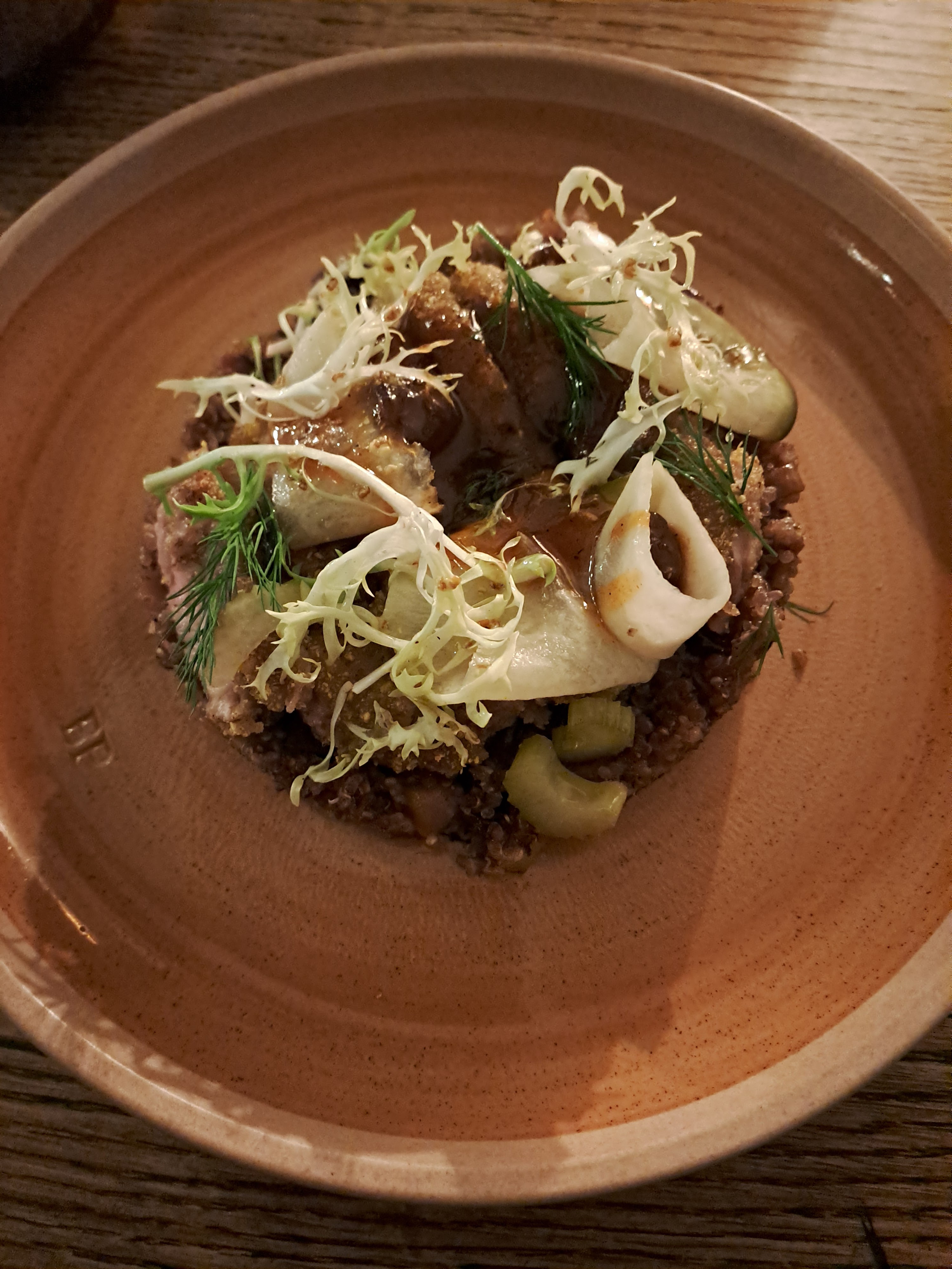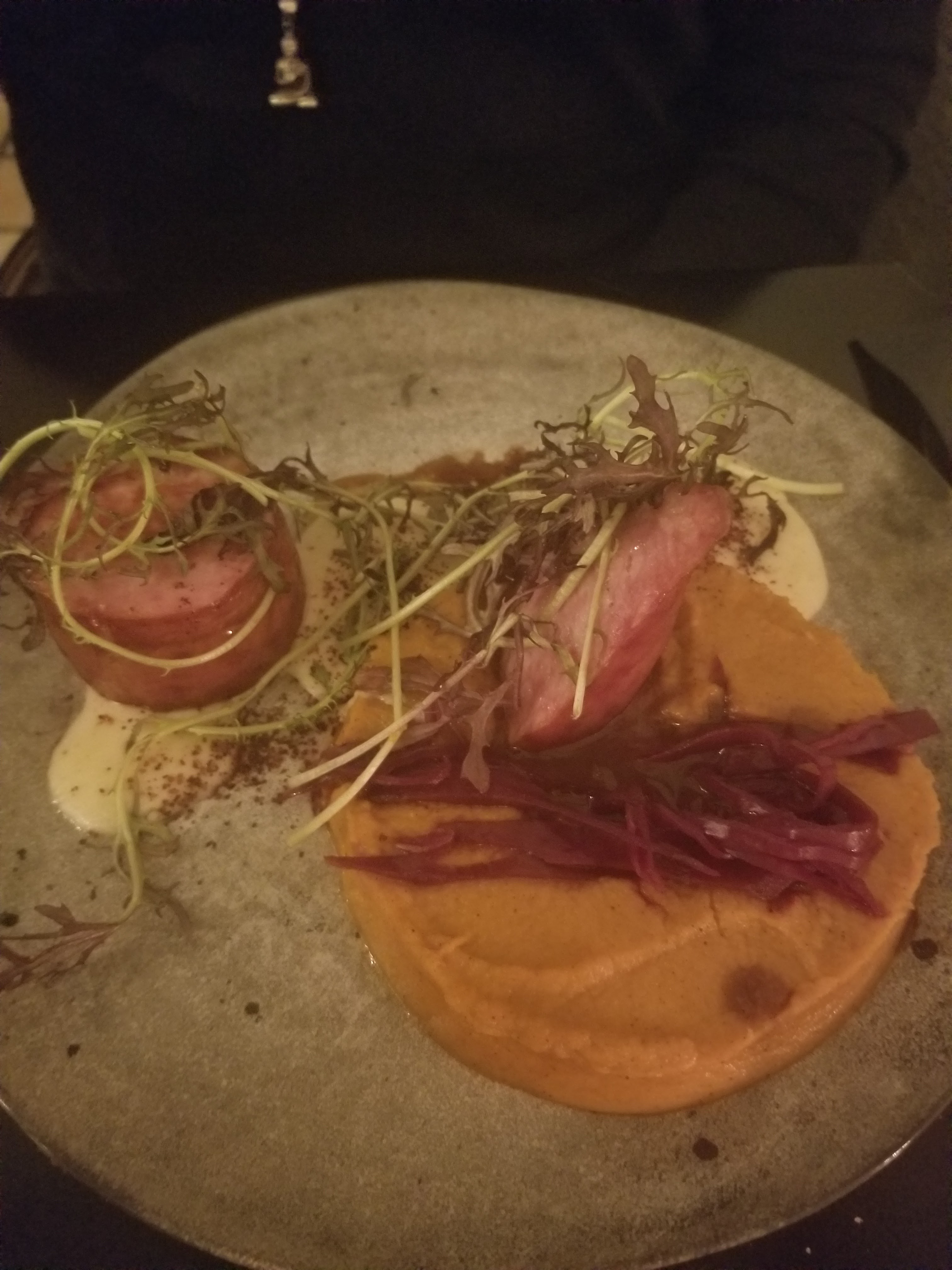 Des associations étonnantes, des mets savoureux et un boss agréable autour de ses tables, attentif et formateur auprès de ses apprentis. BRAVO L’épeautre revenu à la poêle avec du sel en guise d’amuse bouche, les betteraves en croûte en accompagnement du magret dont la cuisson était parfaite…que dire des Tempura de…poireau, à la crême d’ail et encre de seiche ou du Tiramisu rhubarbe sablé vanille. DÉ-LI-CIEUX
